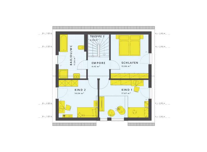 Nicht enthalten sind individuelle Finish-Materialien sowie Außen-, Nebenanlagen-, Kauf-, und Baunebenkosten. Das Angebot stellt eine Beispiel-Bebauung dar; verschiedene Gestaltungsmöglichkeiten sind vorhanden - sprechen Sie uns darauf an!