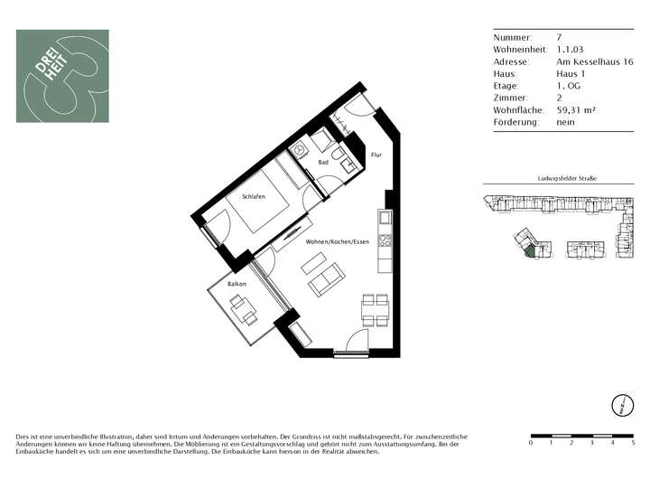 Die Wohnung ist Teil des Projekts DREIHEIT und liegt im Norden des Quartiers DIAMALTPARK. In dieser 2 Zimmer Wohnung finden Paare und anspruchsvolle Singles ein schickes Zuhause. Die smarte Grundrisslösung schafft ebenso Platz zum Ankommen und Abschalten, Gemeinsamkeit und Rückzug wie Raum zur individuellen Gestaltung. Einladend präsentiert sich das Wohnzimmer, mit Zugang zum Balkon, als Herzstück der 2-Zimmer-Wohnung. Der Koch- und Essbereich bietet Zugang zum gemütlichen Schlafzimmer. Ein Duschbad macht das Raumangebot komplett.