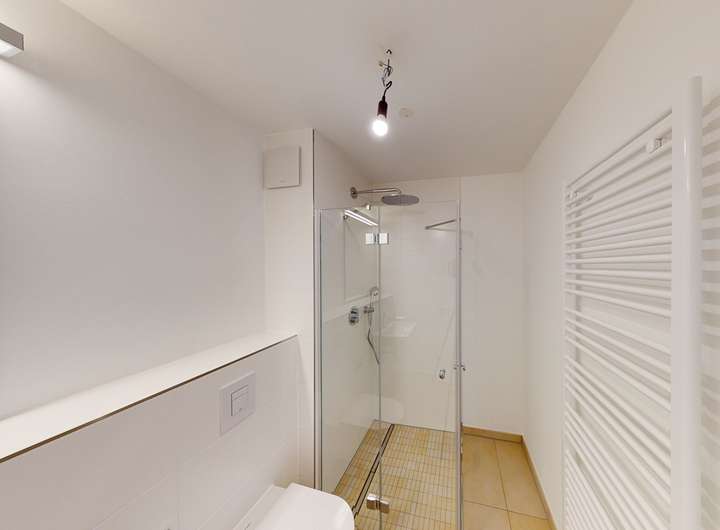 Fußbodenheizung sowie ein zusätzlicher elektrischer Handtuchheizkörper im Bad