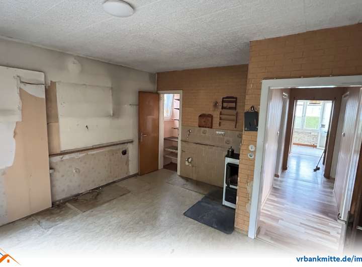 Die Immobilie befindet sich in einem sanierungsbedürftigen Zustand und bietet daher besonders handwerklich begabten Käufern die Chance, ein Haus nach eigenen Vorstellungen zu gestalten und zu modernisieren.