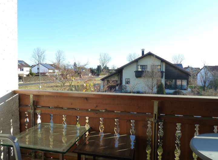 Vom schönen Balkon hat man einen herrlichen Blick auf die angrenzenden Wiesen.