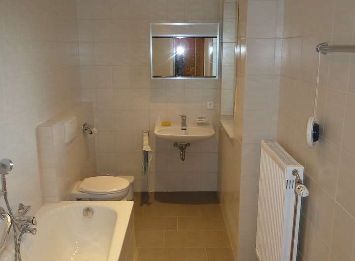 Das Bad mit Badewanne, Dusche mit neuer Glaswand und natürlich einem Fenster zur Belüftung rundet diese tolle Wohnung ab.