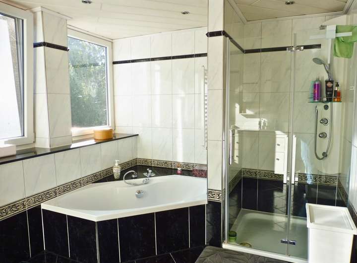 - Großes Tageslichtbad mit Eckbadewanne und Dusche