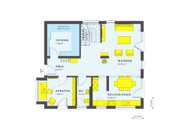 Nicht enthalten sind individuelle Finish-Materialien sowie Außen-, Nebenanlagen-, Kauf-, und Baunebenkosten. Das Angebot stellt eine Beispiel-Bebauung dar; verschiedene Gestaltungsmöglichkeiten sind vorhanden - sprechen Sie uns darauf an!