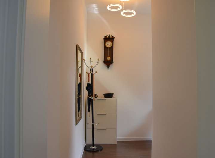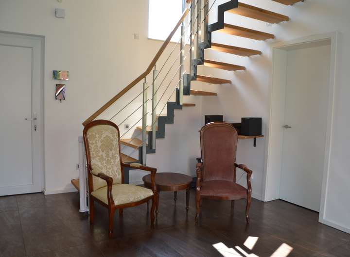 Bereits beim Betreten offenbart sich der besondere Charakter dieser Immobilie: Der repräsentative Eingangsbereich empfängt Sie mit einer maßgefertigten Designertreppe, die moderne und klassische Stilelemente auf beeindruckende Weise miteinander verbindet. Hier spürt man sofort: Dieses Haus ist mehr als nur ein Ort zum Wohnen – es ist ein Lebensgefühl.
