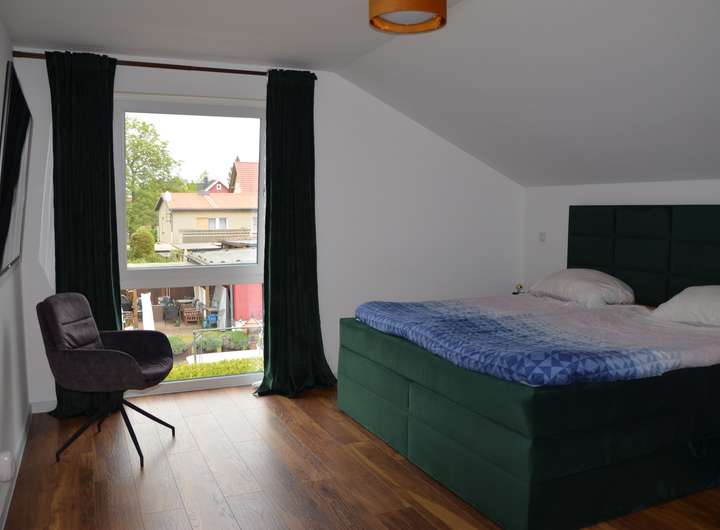 • ein großzügiges Elternschlafzimmer mit begehbarem Kleiderschrank,