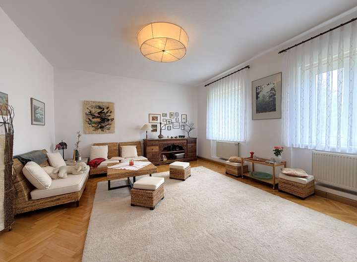 Diese großzügige Doppelhaushälfte aus den 1930er-Jahren wurde zwischen 1999 und 2006 umfassend modernisiert. Von außen wirkt das Haus eher kompakt – tatsächlich entfaltet die Immobilie im Inneren ein echtes Raumwunder und verbindet stilvolle Wohnqualität mit durchdachter Alltagstauglichkeit.