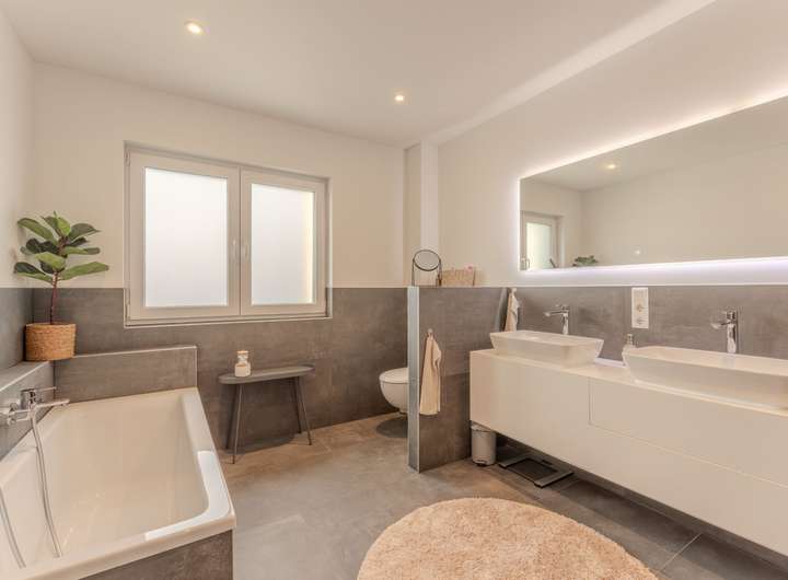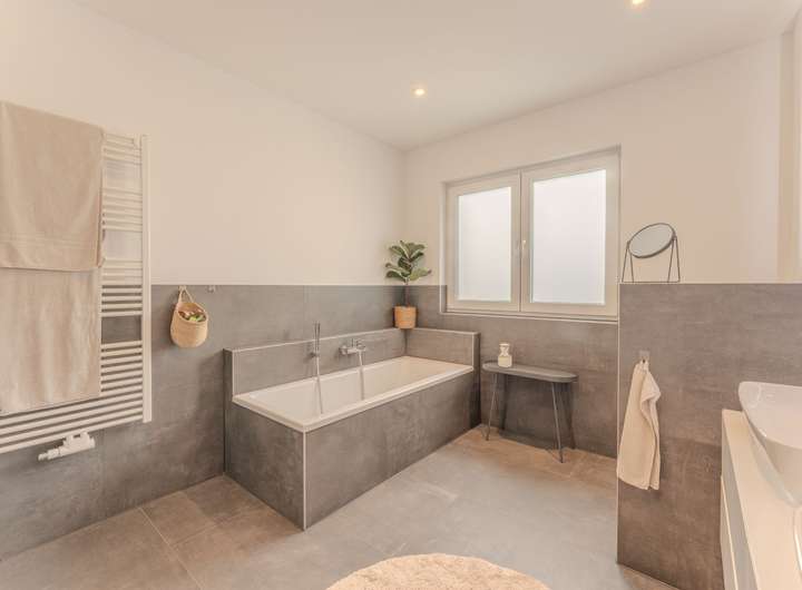Die Fenster sind 3-fach verglast und mit elektrischen Alu-Rollläden ausgestattet, die für angenehme Ruhe und Privatsphäre sorgen. Dank Fußbodenheizung herrscht zu jeder Jahreszeit wohlige Wärme.