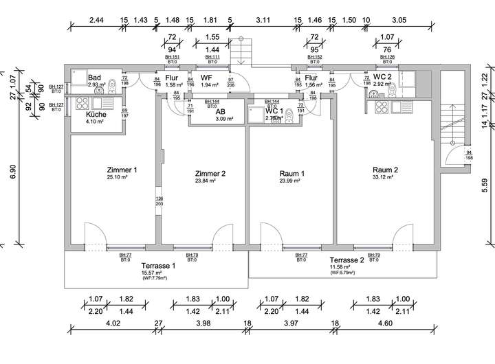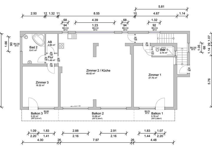 Bei Bedarf wäre eine Zusammenlegung aller drei Einheiten möglich, woraus sich eine Gesamtwohnfläche von ca. 140,54 m² ergeben würde.