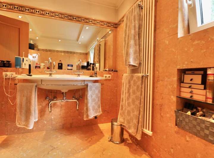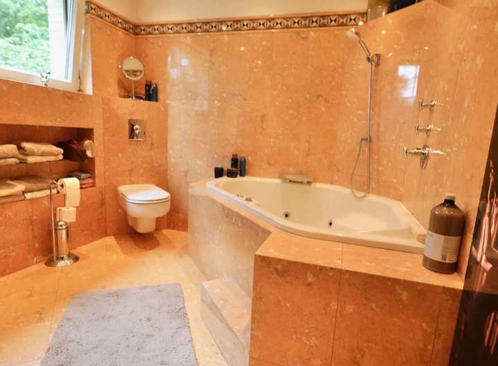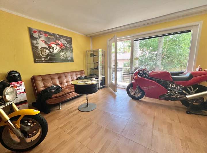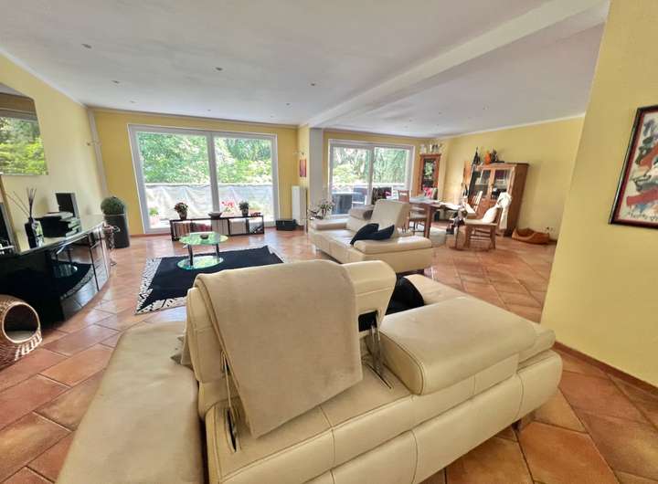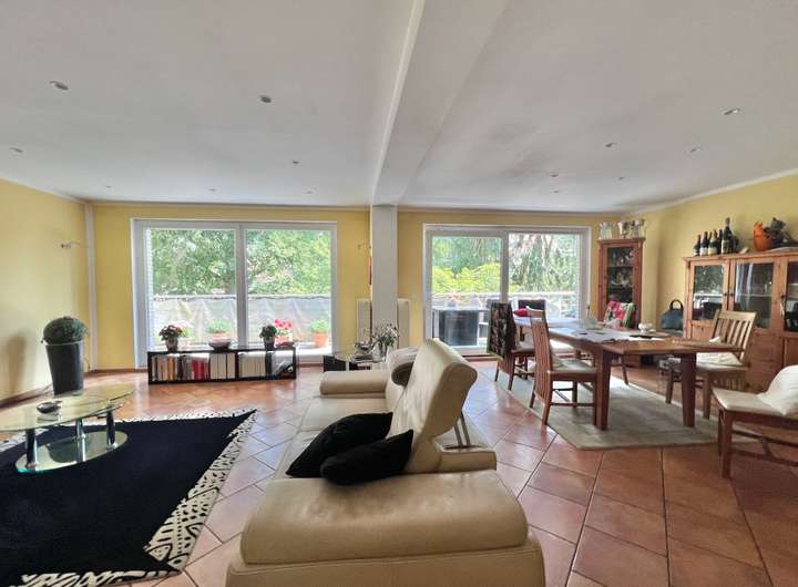 Im oberen Geschoss befindet sich eine Wohneinheit mit insgesamt ca. 138 m² Wohnfläche, die aktuell in zwei Bereiche unterteilt genutzt wird. Ein Bereich besteht aus einem Zimmer mit Duschbad. Hier könnte auch noch eine Küche eingebaut werden. Der andere Bereich, die sogenannte Master-Wohnung, verfügt über einen äußerst großzügigen Wohn-/Essbereich mit integrierter Küche, einen praktischen Abstellraum, ein Schlafzimmer sowie ein Badezimmer mit Eckbadewanne.