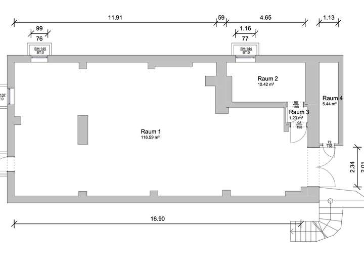 Das Souterrain bietet einen großen Raum mit ca. 116,59 m² Nutzfläche sowie zwei weitere kleinere Räume und eröffnet dadurch vielfältige Nutzungsmöglichkeiten.
