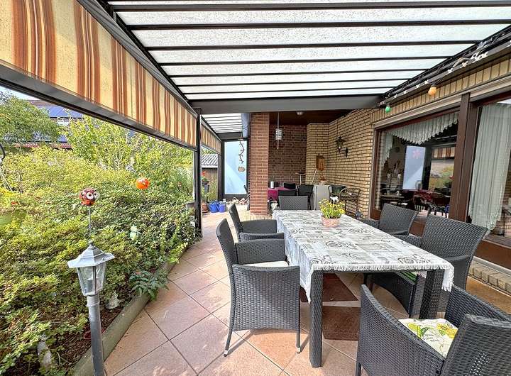 Das Raumkonzept umfasst ein imposantes, ca. 56m² großes Wohnzimmer mit Kamin, eine Küche, ein Bad mit Wanne, ein separates Bad mit Dusche sowie mehrere Schlafzimmer. Eine hochwertig überdachte Terrasse verbinden den Wohnbereich harmonisch mit dem Garten.