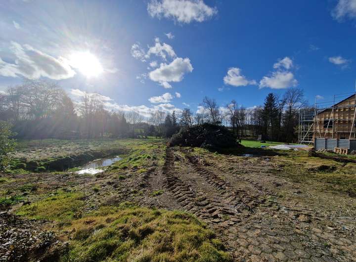 Es handelt sich um ein ca. 3000 m² großes Grundstück das sich gerade in Teilung befindet, sodass zwei Grundstücke entstehen