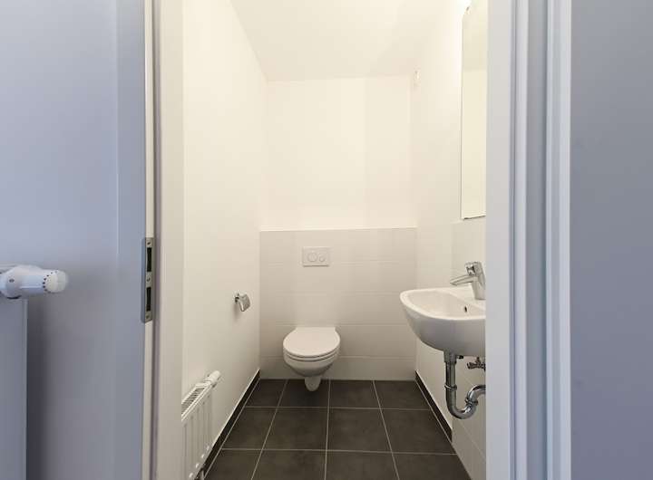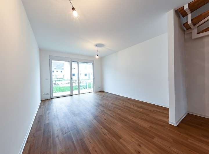 Im Erdgeschoss des Hauses befindet sich eine offene Küche, das Wohnzimmer, der Hauswirtschaftsraum sowie ein Gäste-WC. Über das Wohnzimmer haben Sie Zugang zur Terrasse, sowie zu Ihrem eigenen, mit niedrigen Zäunen abgetrennten, gemütlichen Garten.