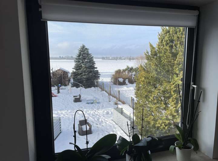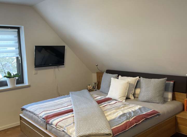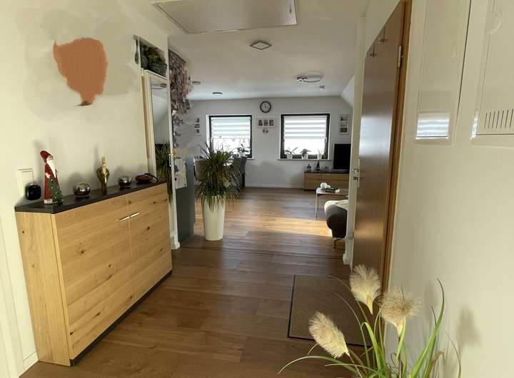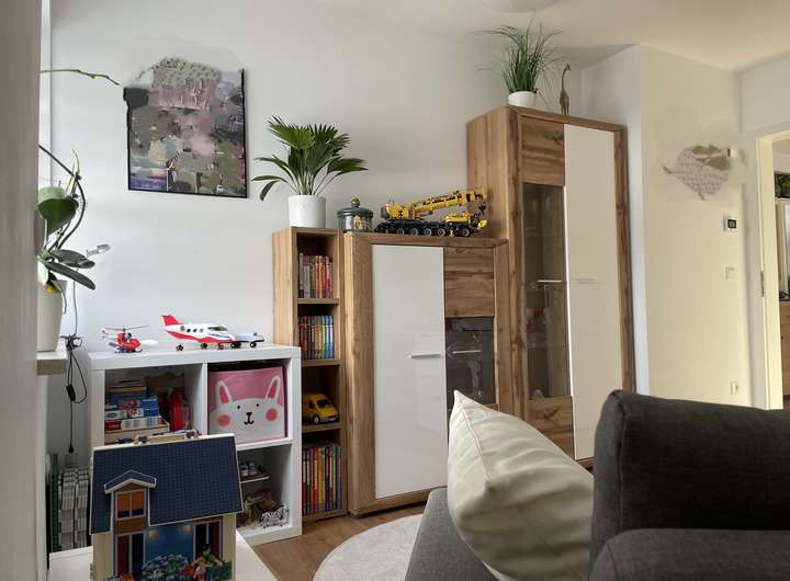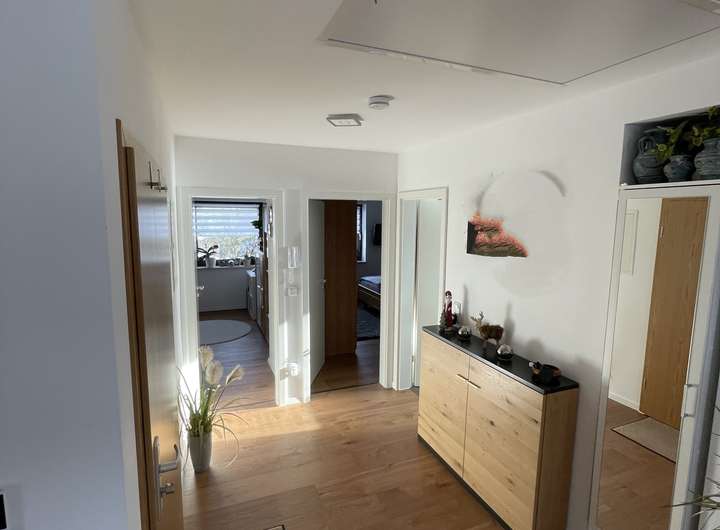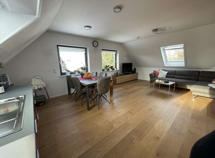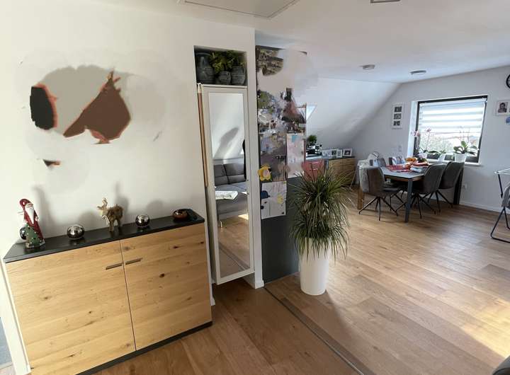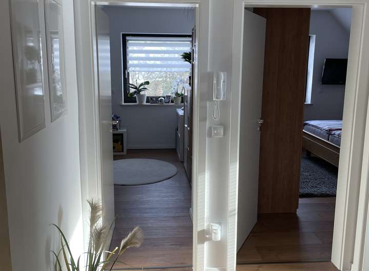 Die besonders helle und ruhige 3-Zimmer-Wohnung befindet sich im ersten Obergeschoss der Afrastraße in Friedberg. Das Dachgeschoss wurde 2021 fertiggestellt und dabei nach heutigem Standard mit 180 mm Dämmmaterial gedämmt. Dadurch herrscht sowohl im Sommer als auch im Winter ein angenehm ausgeglichenes Raumklima.