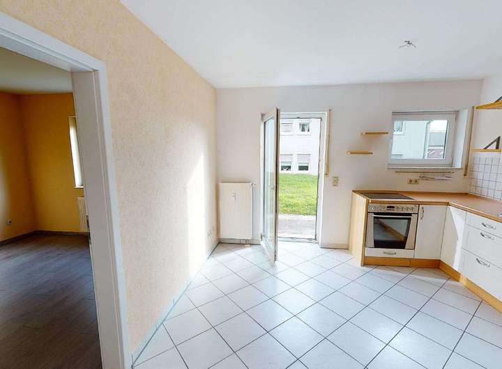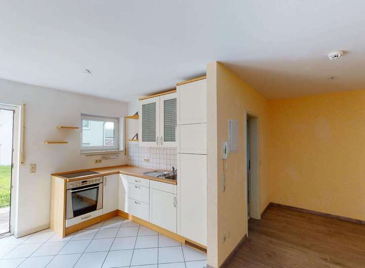 Gemütliche Single-Wohnung mit Terrasse und Einbauküche.