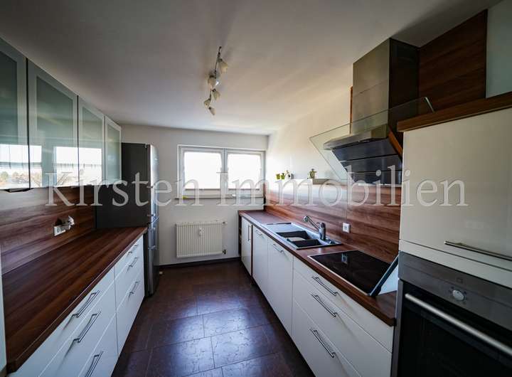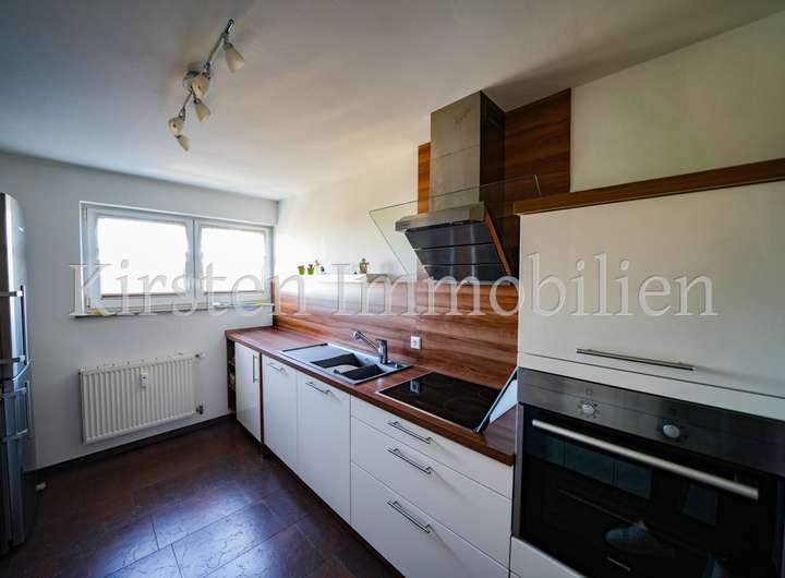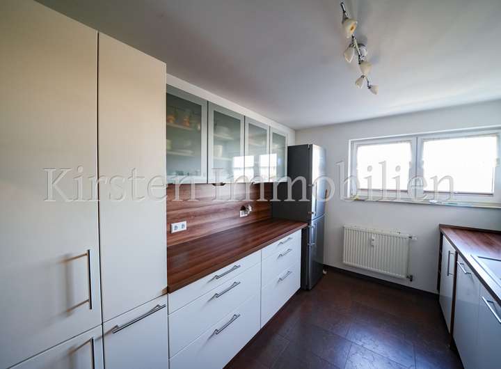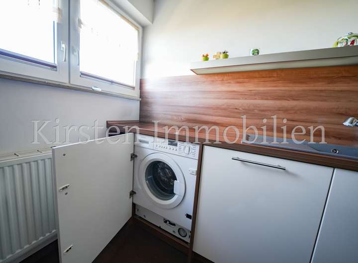 Die Küche wurde ebenfalls modernisiert und mit einer hochwertigen Einbauküche ausgestattet, in die auch die Waschmaschine integriert ist, funktional und platzsparend zugleich.