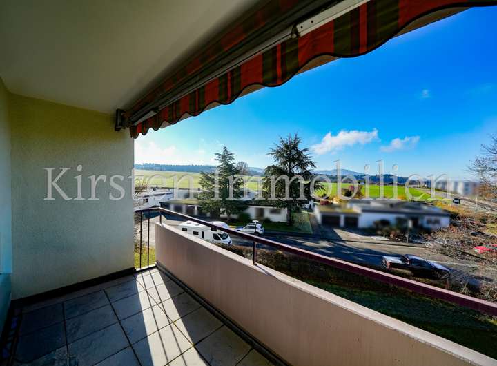 Das Schlafzimmer bietet Ruhe und ausreichend Platz, während der Wohn- und Essbereich mit seiner Helligkeit und dem direkten Zugang auf den überdachten Balkon mit Markise begeistert. Von hier genießen Sie den herrlichen Ausblick auf die Balinger Berge bis hin zum Plettenberg.