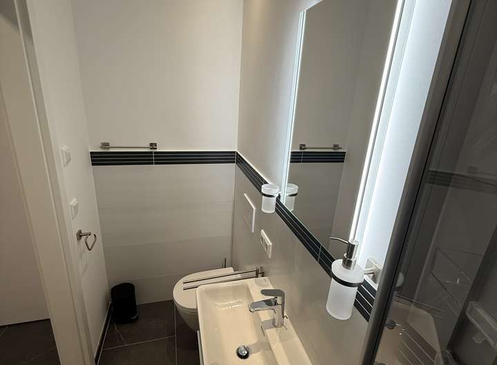 Diese Top modernisierte und voll ausgestattete Wohnung überzeugt mit einem neuen Fliesenboden sowie frisch angelegten weiß gestrichenen Wänden. Das neu sanierte Badezimmer verfügt über eine Dusche, WC u. Waschtisch mit Spiegelschrank inkl. Handtuchhaltern, Glasbecher u. Seifenspender. Ein besonderes Highlight ist der Blick in den Höchster Stadtpark, der zum Entspannen einlädt. Im Sommer kann man mit der Klimaanlage die Temperaturen angenehm kühlen. Eine Waschmaschine und Trockner stehen zur Verfügung. Die Elektrik sowie die Heizungen wurden ebenfalls modernisiert und auf den neuesten Stand gebracht. Top Moderne Beleuchtungssysteme, Sprechanlage, TV -Flachbildschirm, Freies WLAN. Die moderne Küche hat ein Induktionsfeld mit Abzug nach unten, Backofen, Spülmaschine und Kühlschrank. Zum Essen eine schöne Theke mit Barhockern. Genügend Kleider.- u. Garderobenschränke. Eine hochwertige Schlafcouch mit 7 Zonen Kaltschaummatratze auf Tellersprungrahmen. Couchtische mit Sessel. Neues großes Fenster mit 3 fach Verglasung und Jalousie.
