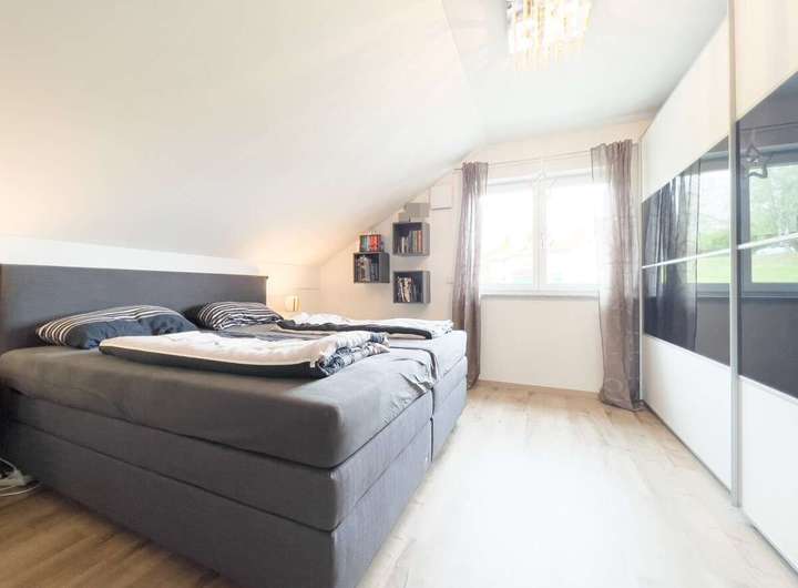 - Schlafräume mit hochwertigen Laminatböden in Eiche-Optik