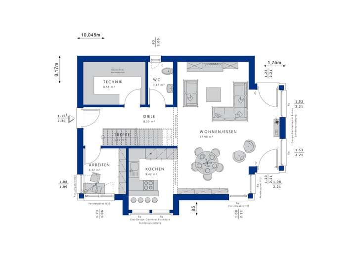 Der angegebene Preis bezieht sich auf ein schlüsselfertiges Haus mit allen abgebildeten Bauteilen inklusive Grundstück.