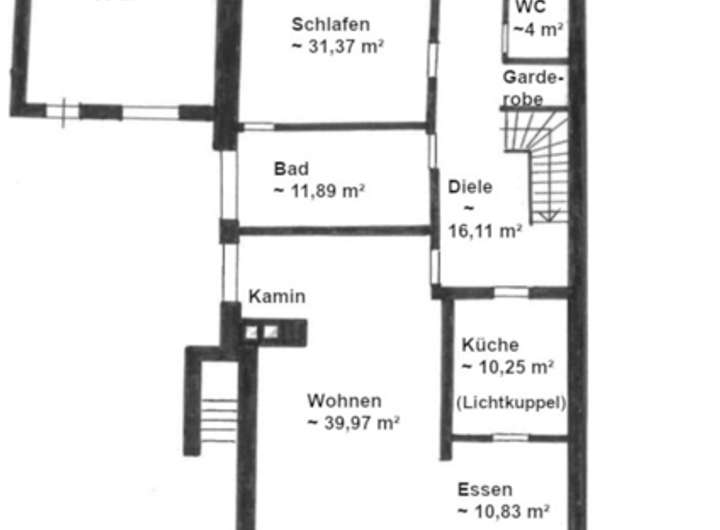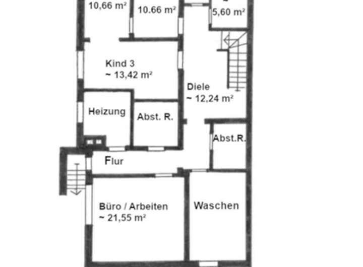 3 Schlafräume, großes Arbeitszimmer, Duschbad, Diele, Waschküche, Heizungsraum, Abstellräume