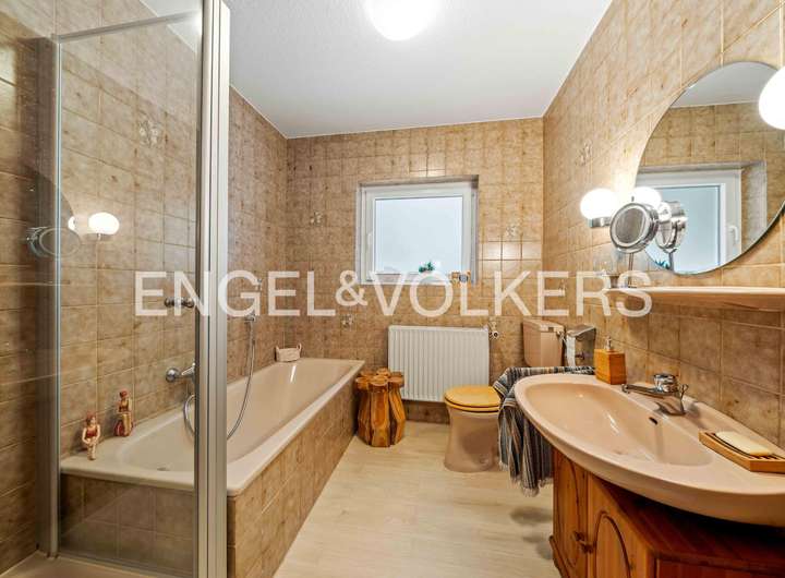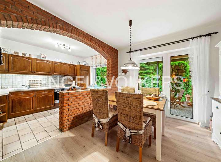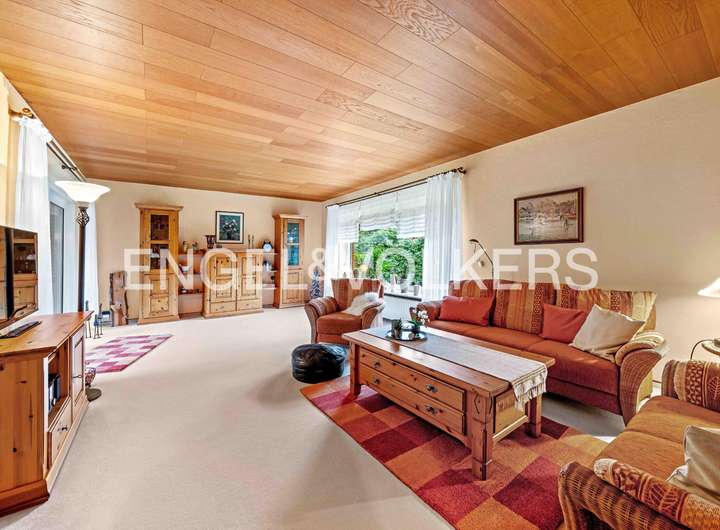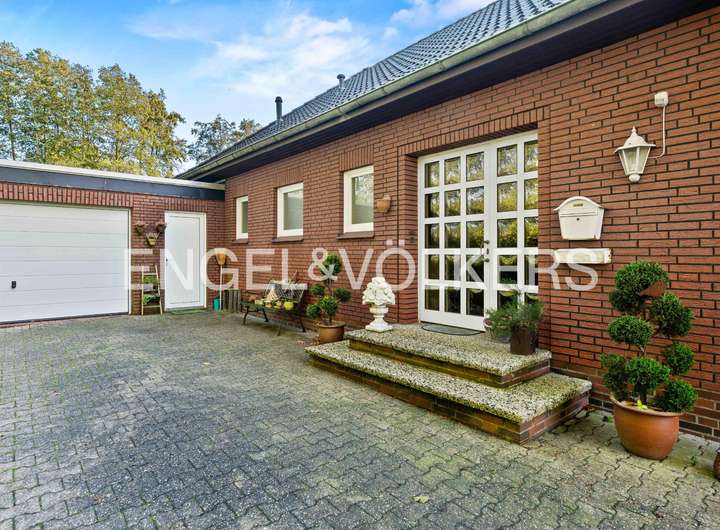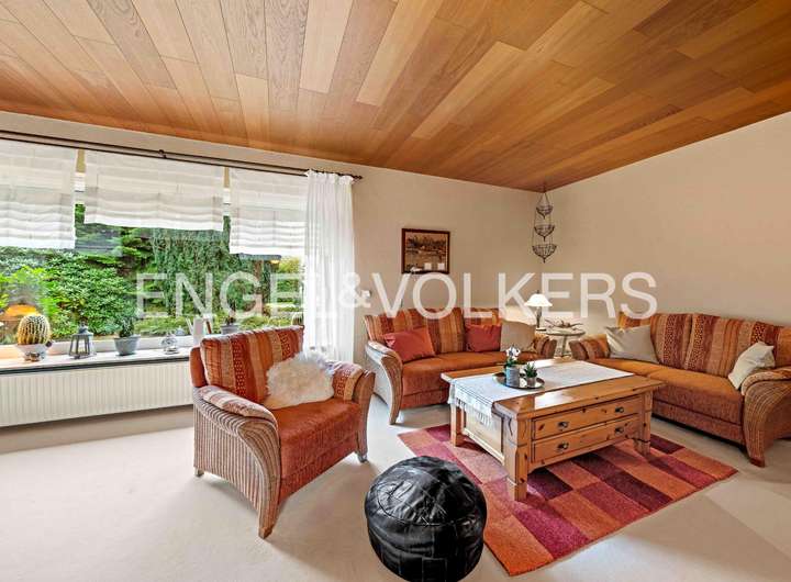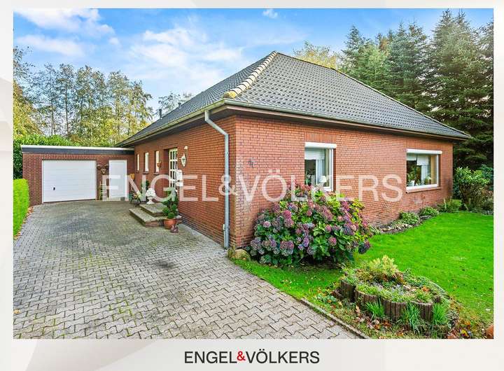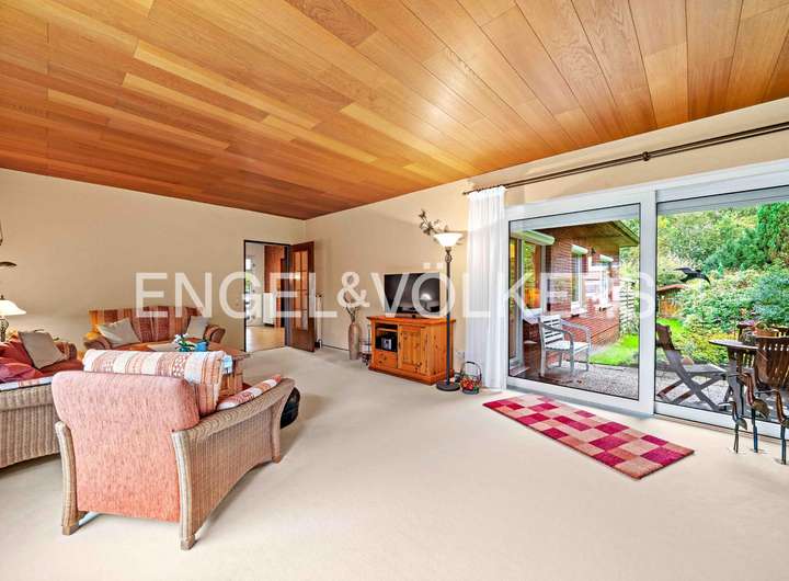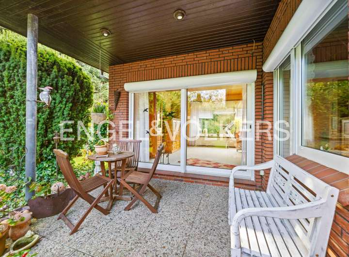 Dieser gepflegte Bungalow aus dem Jahr 1980 bietet Ihnen auf einer Wohnfläche von ca. 114 m² und einem großzügigen Grundstück von rund 1.252 m² viel Platz und Gestaltungspotenzial. Das Haus befindet sich überwiegend im Originalzustand und eignet sich ideal für Liebhaber solider Bausubstanz, die ihren eigenen Wohnstil verwirklichen möchten. Beim Betreten des Hauses erwartet Sie ein einladender Eingangsbereich mit Fliesen aus dem Baujahr. Gleich links befindet sich ein Gäste-WC, ebenfalls in originaler Ausstattung. Das Wohnzimmer überzeugt durch eine große Fensterfront mit Blick in den Garten und bietet direkten Zugang zur überdachten Terrasse mit Schiebetüren – perfekt für entspannte Stunden im Freien. Alle Fenster sind mit manuellen Außenrollläden versehen. Der Essbereich ist mit einem modernen Vinylboden ausgestattet und grenzt direkt an die Küche. Der E-Herd und Backofen wurden bereits erneuert, die übrige Kücheneinrichtung stammt noch aus dem Baujahr. Vom Flur aus erreichen Sie ein weiteres Zimmer, das sich ideal als Gäste- oder Kinderzimmer eignet. Über einen zweiten Flur gelangen Sie in das Tageslichtbad mit Dusche, Badewanne und WC. Die Ausstattung ist original, der Boden wurde jedoch bereits mit Vinyl erneuert. Das Schlafzimmer verfügt ebenfalls über einen Vinylboden. Ein Abstellraum beherbergt Strom-, Gas- und Wasserzähler. Der Hauswirtschaftsraum bietet Platz für Waschmaschine und Trockner und ist mit einer Buderus-Gasheizung ausgestattet. Von hier aus gelangen Sie direkt in die zweigeteilte Garage mit elektrischem Rolltor. Das großzügige Grundstück ist rundum eingewachsen und bietet durch Bäume und Sträucher ein hohes Maß an Privatsphäre. Neben der überdachten Terrasse steht Ihnen eine Blockhütte zur Aufbewahrung von Gartengeräten zur Verfügung.