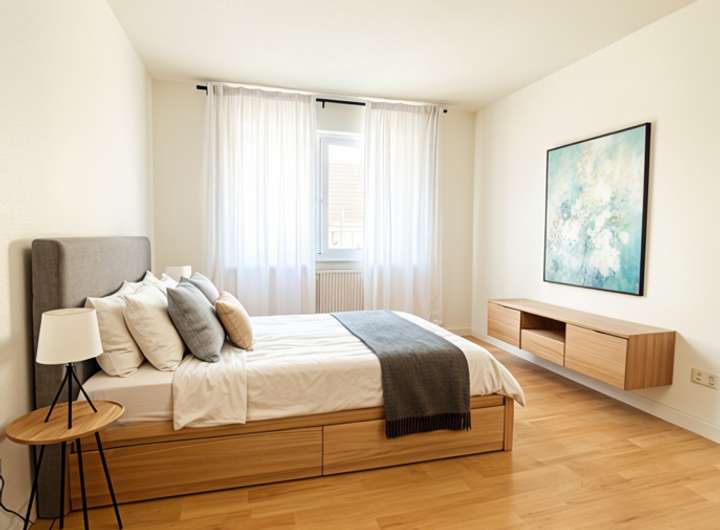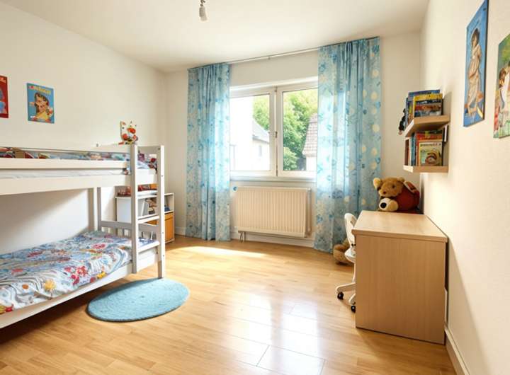 Weiter links gelangen Sie zu zwei weiteren Räumen: einem Schlafzimmer sowie einem zweiten Zimmer, das sich flexibel als Kinderzimmer, Büro oder Gästezimmer nutzen lässt.