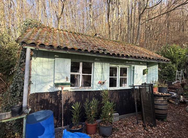 Auf dem Grundstück steht eine sanierungsbedürftige, aber charaktervolle Freizeithütte. Betrachten Sie dies als Ihr spannendes Projekt! Es ist die ideale Gelegenheit Pläne zu schmieden und die Hütte ganz nach Ihren Bedürfnissen umzugestalten.