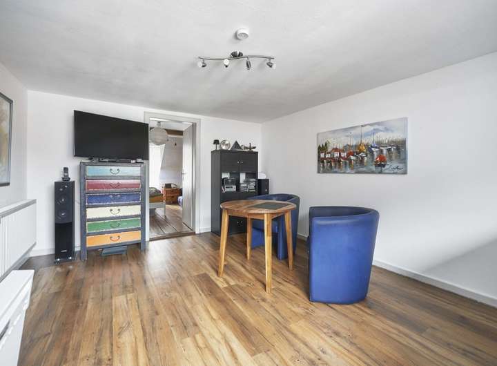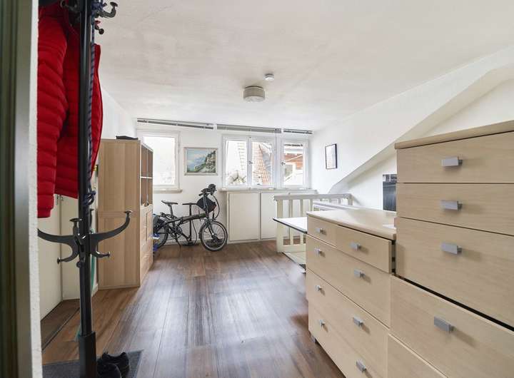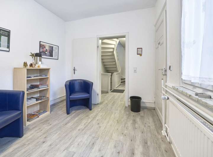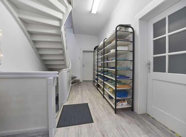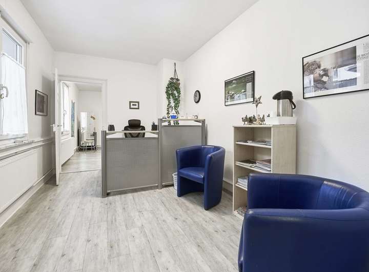 Das gesamte Erdgeschoss war bisher an eine Apotheke vermietet, im Obergeschoss befindet sich seit Jahrzehnten eine Praxis für Physiotherapie, deren Inhaber die Wohnung im Dachgeschoss bewohnt. Die Gewerbefläche im Erdgeschoss hat eine Größe von ca. 131 qm, die Praxisräume im Obergeschoss ca. 90 qm. Die Wohnung im Dachgeschoss besteht aus 2 Zimmern, einem Flur und einer Küche und verfügt über eine Wohnfläche von ca. 47 qm. Der Dachspitz könnte bei Bedarf ausgebaut werden und so zusätzliche Wohnfläche schaffen.