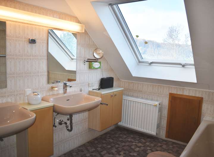 • Tageslichtbad mit Badewanne, Bidet und Doppelwaschbecken sowie separat und innen liegend: Dusche und WC (DG)