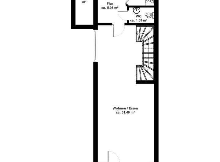 Eine Wohn- und Nutzfläche von ca. 110 m² bieten viel Raum für die Familie. In dem Erdgeschoss stehen ein Wohn- und Esszimmer mit Kaminofen, eine helle Einbauküche und ein modernes Gäste-WC zur Verfügung.