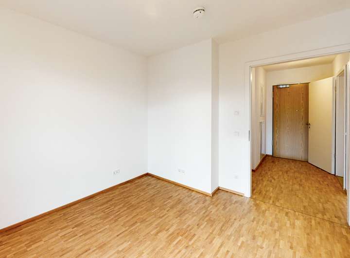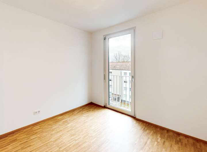 Das Schlafzimmer sowie das weitere Zimmer sind hell und praktisch geschnitten. Ein modernes Bad mit Dusche sowie ein separates WC ergänzen den Grundriss und sorgen für hohen Wohnkomfort.