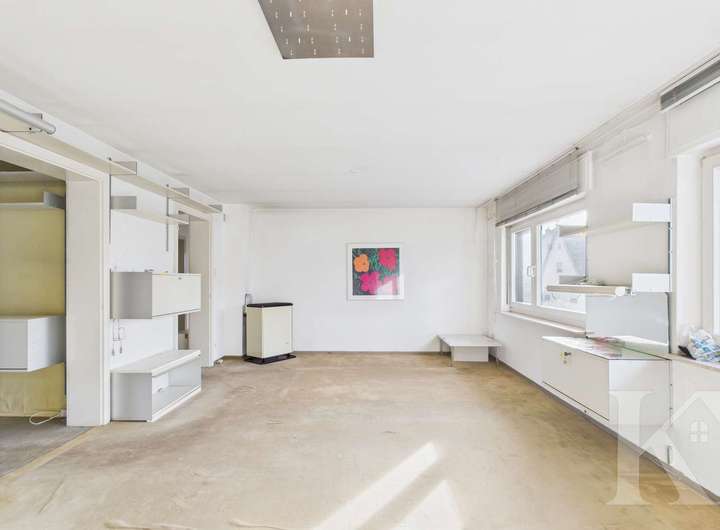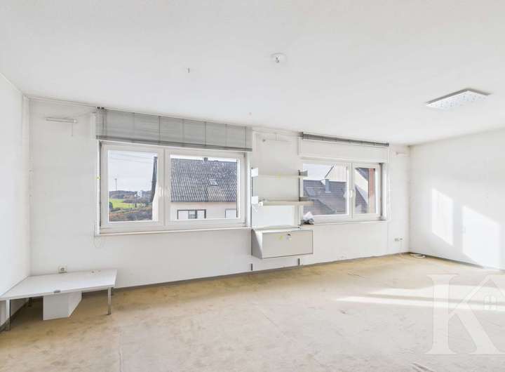 Die Immobilie wurde in klassischer Bauweise errichtet und erstreckt sich über drei Etagen. Im ersten Obergeschoss befindet sich eine gepflegte Wohnung mit Wohnzimmer, Schlafzimmer, Küche und Badezimmer. Große Fensterflächen sorgen für ein angenehmes Raumgefühl und viel Tageslicht.