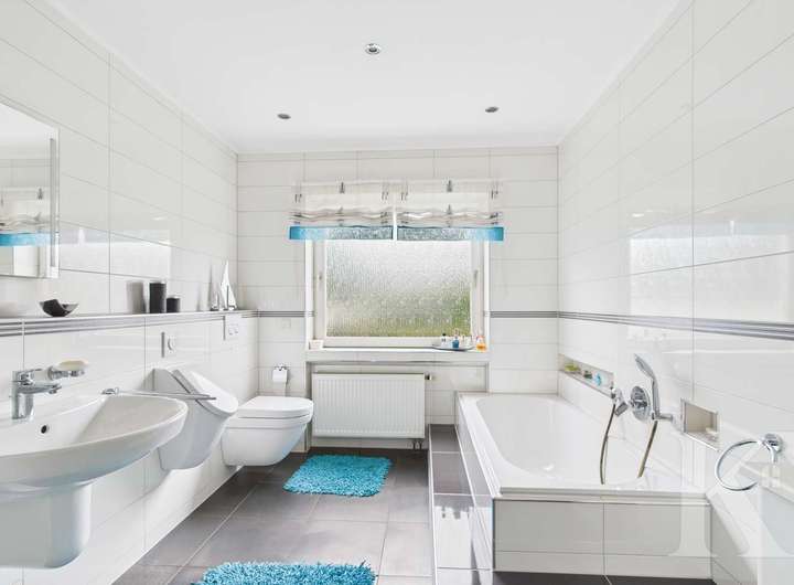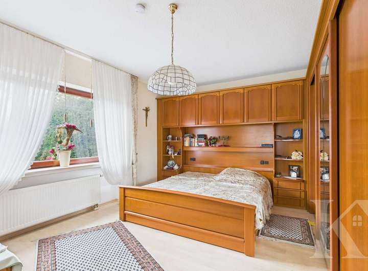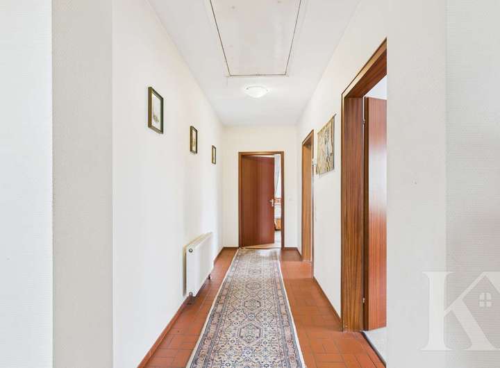 Auf derselben Ebene befinden sich das großzügige Schlafzimmer mit über 20 m² sowie zwei weitere Zimmer, die flexibel als Kinder-, Gäste- oder Arbeitszimmer genutzt werden können. Die Kinderzimmer sind aktuell mit Teppichboden ausgestattet – ein neuer Bodenbelag kann hier für eine moderne Optik sorgen. Das Tageslichtbad wurde 2015 vollständig modernisiert, ist raumhoch gefliest und verfügt über Badewanne und Dusche. Damit ist das Haus auch für komfortables Wohnen im Alter optimal geeignet – ohne Treppen im Alltag.