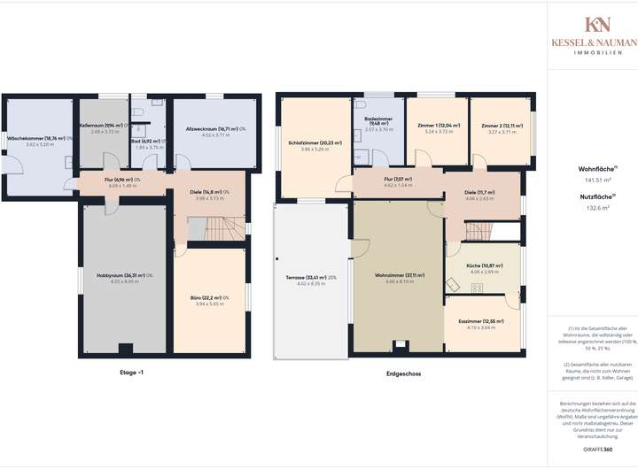 + Voll unterkellert mit 2,20 m Deckenhöhe – inkl. Bad, Büro und Hobbyraum