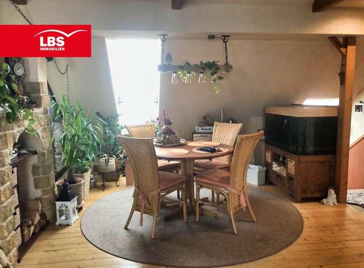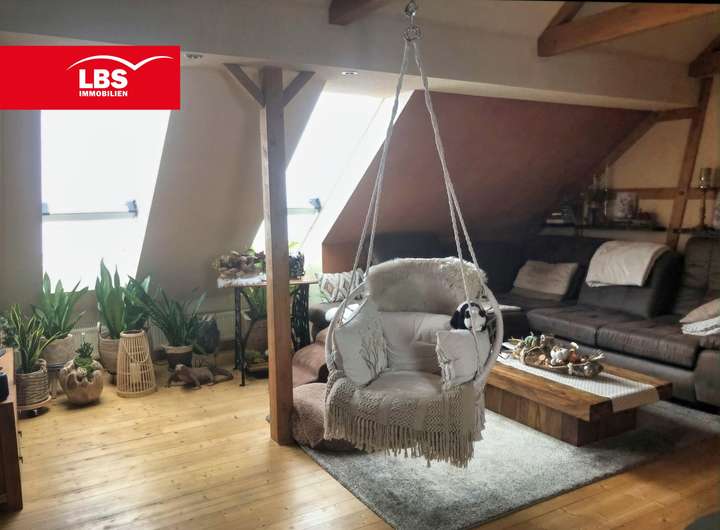 Im Dachgeschoss ist ein wunderschöner Raum entstanden, der erst im Jahr 1989 ausgebaut wurde. Hier befindet sich das Wohnzimmer, die Küche, der Abstellraum (vormals WC) und die einladende Loggia.