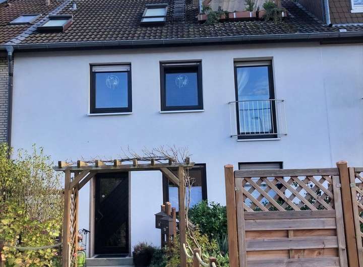 Das Gebäude, in dem sich die Wohnung befindet, ist ein Reihenmittelhaus mit zwei Wohneinheiten.