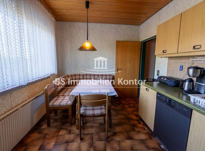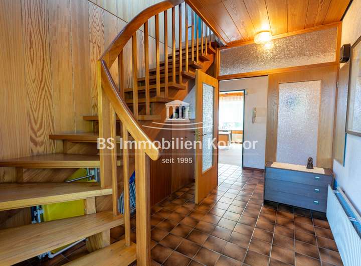 Das renovierungsbedürftige Gebäude besticht durch seine großzügige Raumaufteilung und bietet vielseitiges Potenzial zur Nutzung als Zweifamilienhaus – ideal für Familien mit hohem Platzbedarf. Ebenfalls bietet sich die Nutzung als Büro/Homeoffice an. Die durchdachte Grundrissgestaltung sorgt für helle, gut geschnittene Räume und zahlreiche Gestaltungsmöglichkeiten. Das Gebäude bietet Modernisierungsbedarf – zugleich aber die perfekte Basis, um es nach den eigenen Wünschen zu einem individuellen Zuhause zu verwandeln. Auf dem ca. 1.026 qm großen Grundstück befinden sich eine großzügige Terrasse, eine Garage und PKW-Einstellplätze. Die Kunststofffenster sind Isolierverglast und mit Jalousien ausgestattet. Beheizt wird die Immobilie durch eine Gas-Z. Heizung (BJ 2009). Ein Haus mit großem Potenzial, das darauf wartet, wieder in neuem Glanz zu erstrahlen.