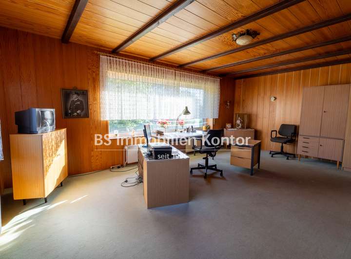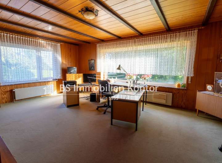 Gebäude: EG: Flur/Diele, Büro, Wohnzimmer, Schlafzimmer, Bad, Küche, Heizungsraum, Aussenabstellraum - unbeheizt