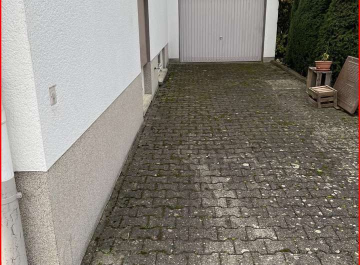 Gepflegtes Haus, das aber schon etwas in die Jahre gekommen ist. In der Straße parken ist etwas problematisch. Dafür bietet der Platz vor der Garage, rechts am Haus, genügend Platz für einen Pkw, Fahrräder oder Kinderwagen.