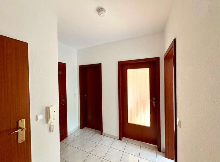 Die Erdgeschosswohnung befindet sich in einem gepflegten 4-Parteienhaus aus dem Jahr 1994 und bietet drei gut geschnittene Zimmer. Alle Räume sind bequem über die zentrale Diele erreichbar.