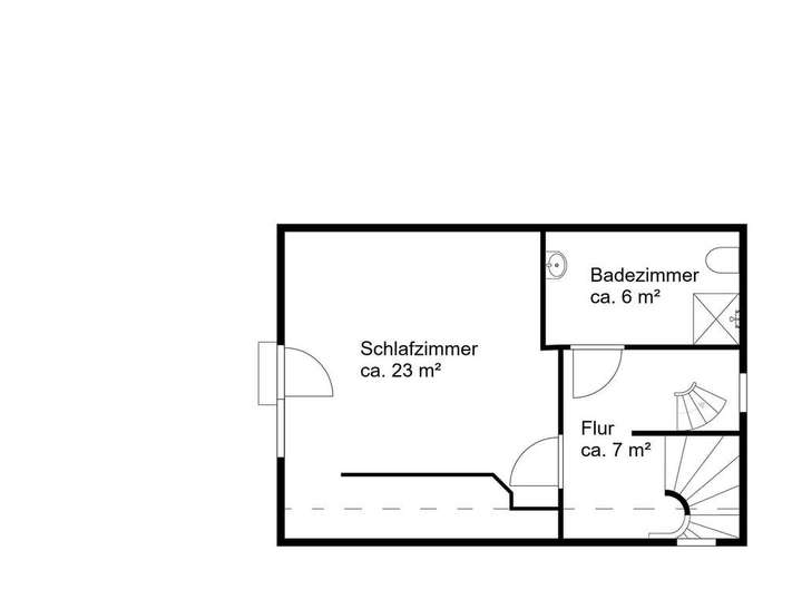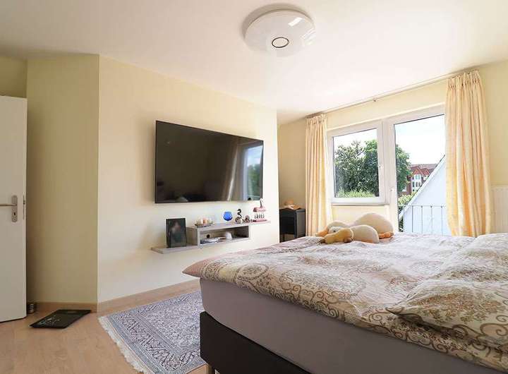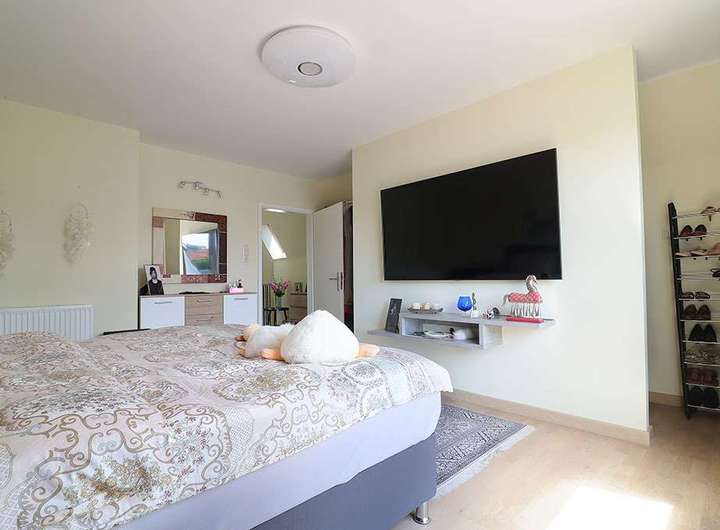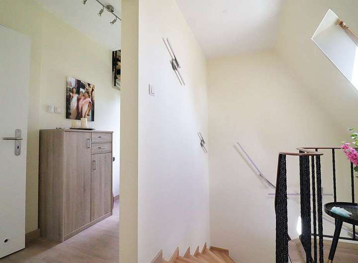 Über die Treppe im Flur gelangt man in das lichtdurchflutete Dachgeschoss. Dort finden Sie ebenfalls ein Duschbad, sowie ein Schlafzimmer mit Ankleide.