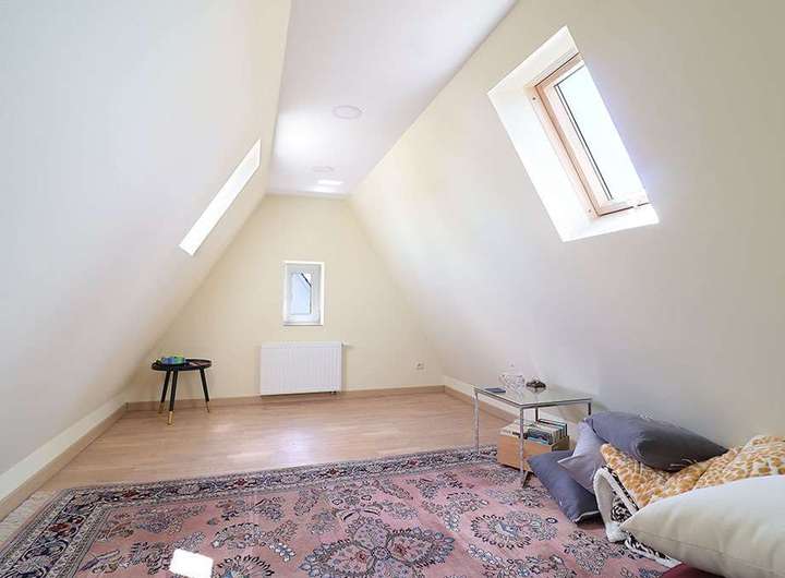 Von dem Flur des Dachgeschoss führt eine Raumspartreppe zum vollausgebauten Spitzboden.