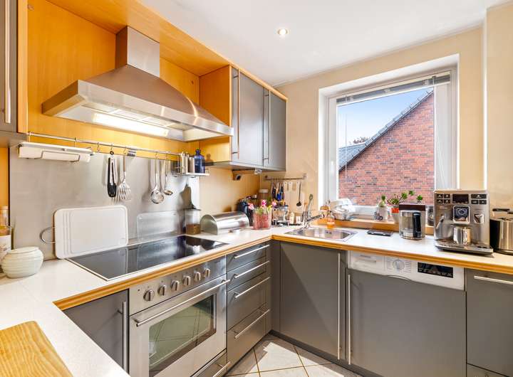 Die Küche ist funktional gestaltet und bietet ausreichend Platz für alle notwendigen Geräte. Sie ist der perfekte Ort, um kulinarische Köstlichkeiten zu zaubern. Im oberen Bereich der Maisonette befinden sich eine helle und großzügige Galerie.