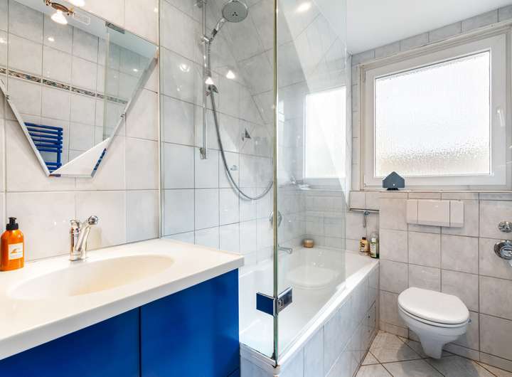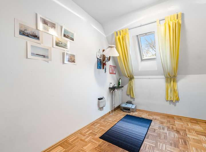 Das Vollbad mit Fenster bietet alles, was Sie für Ihre tägliche Routine benötigen. Die beiden weiteren Zimmer lassen sich flexibel nutzen. Zusätzlich steht ein praktisches Ankleidezimmer zur Verfügung.