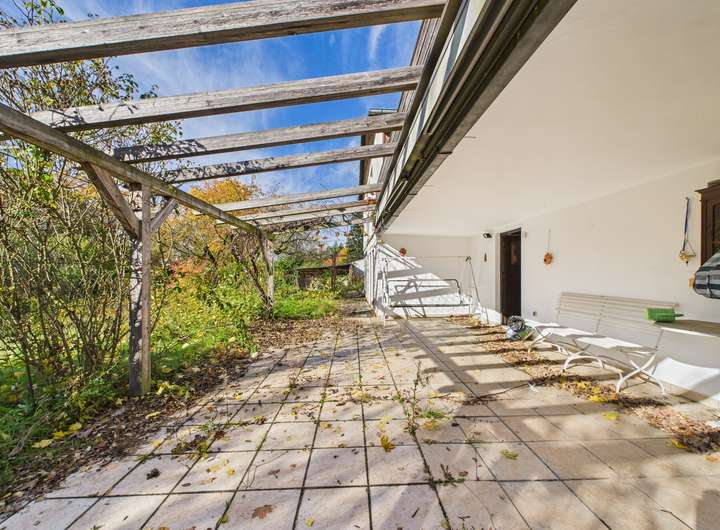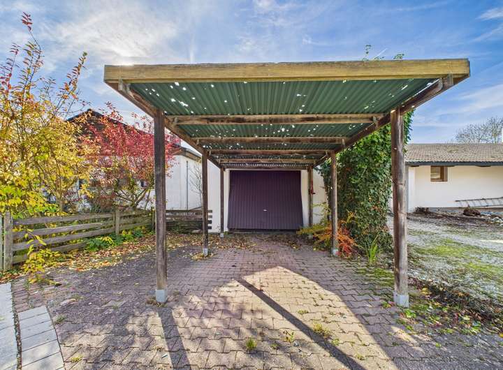 Der große, uneinsehbare Garten lädt zum Entspannen ein und bietet mit seiner teilweise überdachten Terrasse, einem kleinen Zierteich sowie einem offenen Schuppen ideale Voraussetzungen für schöne Stunden im Freien. Eine Einzelgarage mit Carport rundet das Gesamtangebot ab.