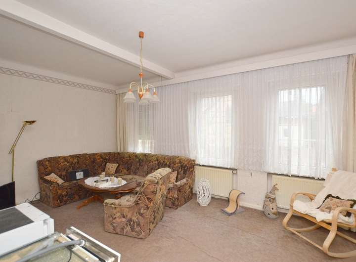Zum Verkauf steht hier in Timmenrode ein großes Einfamilienhaus mit 200m² Wohnfläche und insgesamt 6 Zimmern. Das Haus könnte auch als Zweifamilienhaus genutzt werden, mit jeweils eine 3-Raum-Wohnung im Erd- und Obergeschoss. Hierfür müsste im Obergeschoss das Bad noch mit eine Dusche ausgestattet werden bzw. ein größeres Bad eingebaut werden. Zum Haus gehört ein Nebengebäude mit Platz für Werkstatt und Abstellfläche, ein Innenhof zum Sitzen und eine Garage. Im Preis enthalten ist außerdem noch ein ca. 1.200m² großes, verwildertes Gartengrundstück, ca. 700m vom Haus entfernt. Freuen Sie sich auf eine Besichtigung. Gern vereinbaren wir einen Termin mit Ihnen.