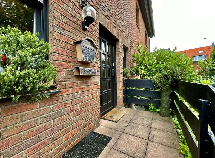 Die Fassade ist mit Klinkerriemchen ausgestattet.