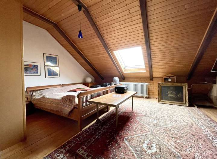 Die Erdgeschoss- und Obergeschossdecke sind massiv, die Dachgeschossdecke ist eine Holzbalkendecke.
